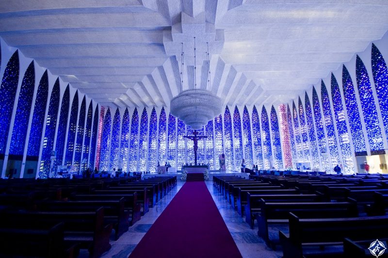 تعد هذه الكاتدرائية الدائرية الفريدة واحدة من أهم المعالم السياحية في برازيليا، تم تصميمها من قبل نيمير وافتتحت في عام 1970، ترتفع اعمدتها لتشكل تاجا يحيط بسقفها الزجاجي، ومن الداخل تسمح النوافذ الزجاجية بدخول الإضاءة الطبيعية، وعند المدخل تقف أربعة تماثيل كبيرة تمثل الإنجيليين الأربعة.